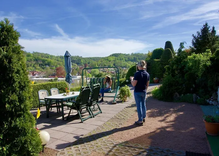 1-slaapkamer Ferienwohnung Panorama Schmalkalden is op 5 minuten wandelen vanaf Totenhofskirche en op 65 km van de luchthaven Erfurt Weimar. Dit 1-badkamer appartement is voorzien van een terras met uitzicht over de tuin.